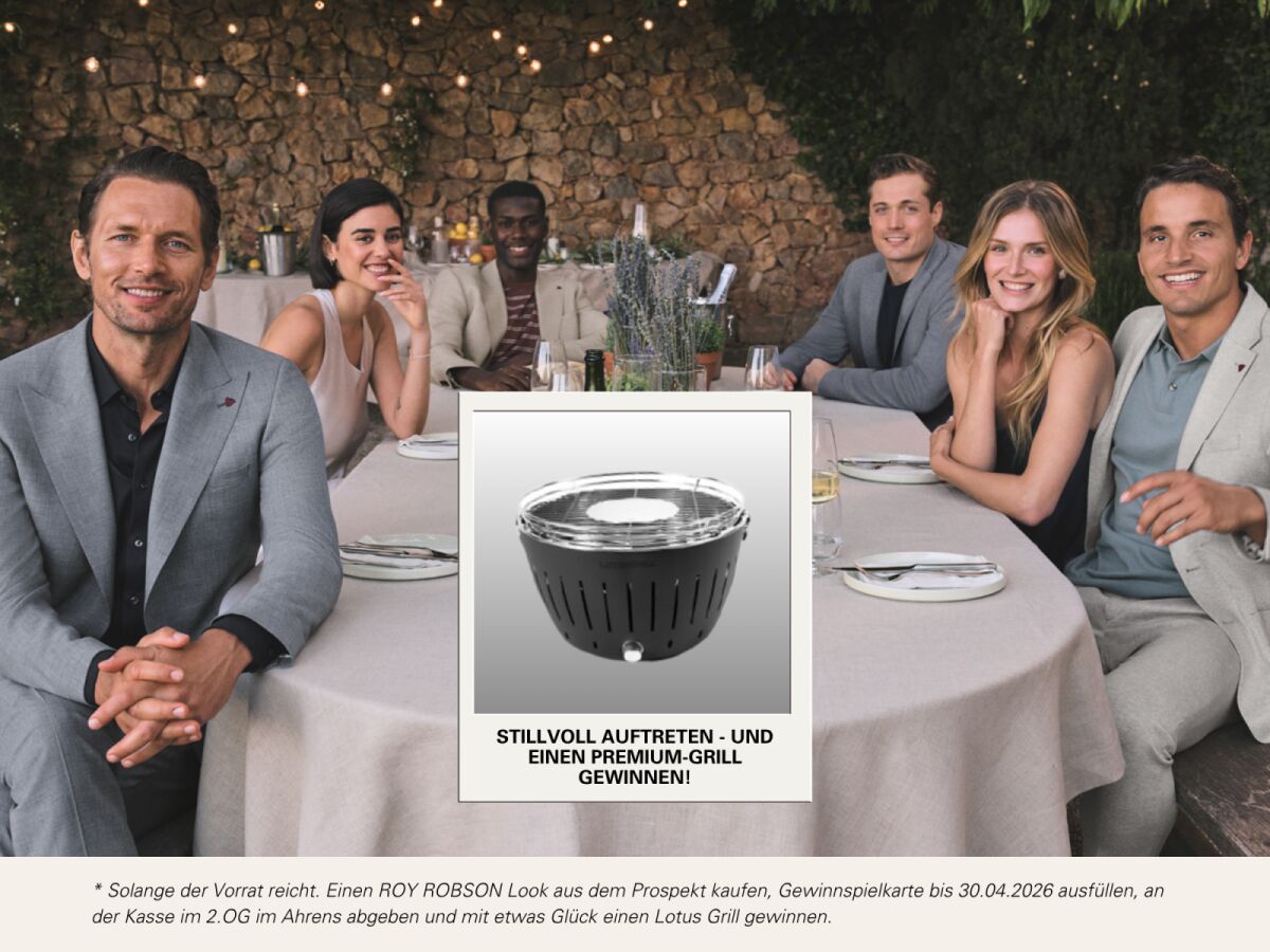 Kaufen Sie Ihren Lieblingslook aus dem Prospekt bei uns im Haus, füllen Sie die Gewinnspielkarte aus und sichern Sie sich Ihre Chance auf einen Holzkohlegrill von Luxusgrill. Die Teilnahme ist bis zum 30. April möglich – mit etwas Glück gehört der Gewinn schon bald Ihnen.