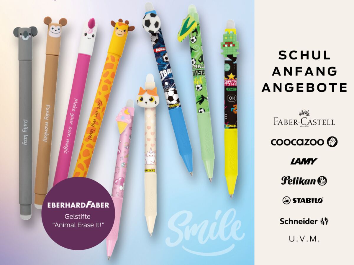 Für alle, die Schreibspaß mit einem Augenzwinkern mögen, haben wir einen besonderen Hingucker im Sortiment: die Gelschreiber „Animal Erase It“ – mit süßen Tierköpfen, passenden Sprüchen und natürlich radierbarer Tinte. Ein echter Hit bei Grundschülerinnen und Grundschülern – aber auch bei allen, die das Besondere lieben.
