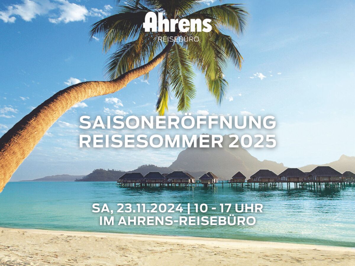 Preview: Wir möchten Sie herzlich zu unserer Saisoneröffnung für den Reisesommer 2025 am 23. November, von 10 - 17 Uhr, in unser Reisebüro einladen. Neben den exklusiven und beliebtesten Highlights der neuen Reisesaison erwarten Sie kulinarische Köstlichkeiten und ein Gewinnspiel mit tollen Preisen. Lassen Sie sich für Ihren nächsten Traumurlaub inspirieren.