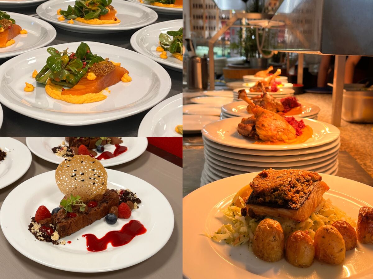 Als Hauptgang wurde die knusprig gebratene Gänsekeule serviert – klassisch mit Apfelrotkohl, einer fruchtigen Orangen-Cassisjus und cremigem Kürbis-Maronenpüree. Für alle, die Fisch bevorzugten, wurde alternativ ein gegrilltes Lachsfilet unter einer Kürbiskernkruste geboten – begleitet von Apfel-Spitzkohl-Gemüse, Kren und feinen Kräuter-Drillingen – ein Beispiel dafür, wie sich traditionelle und innovative Gastronomie harmonisch miteinander verbinden lassen.
