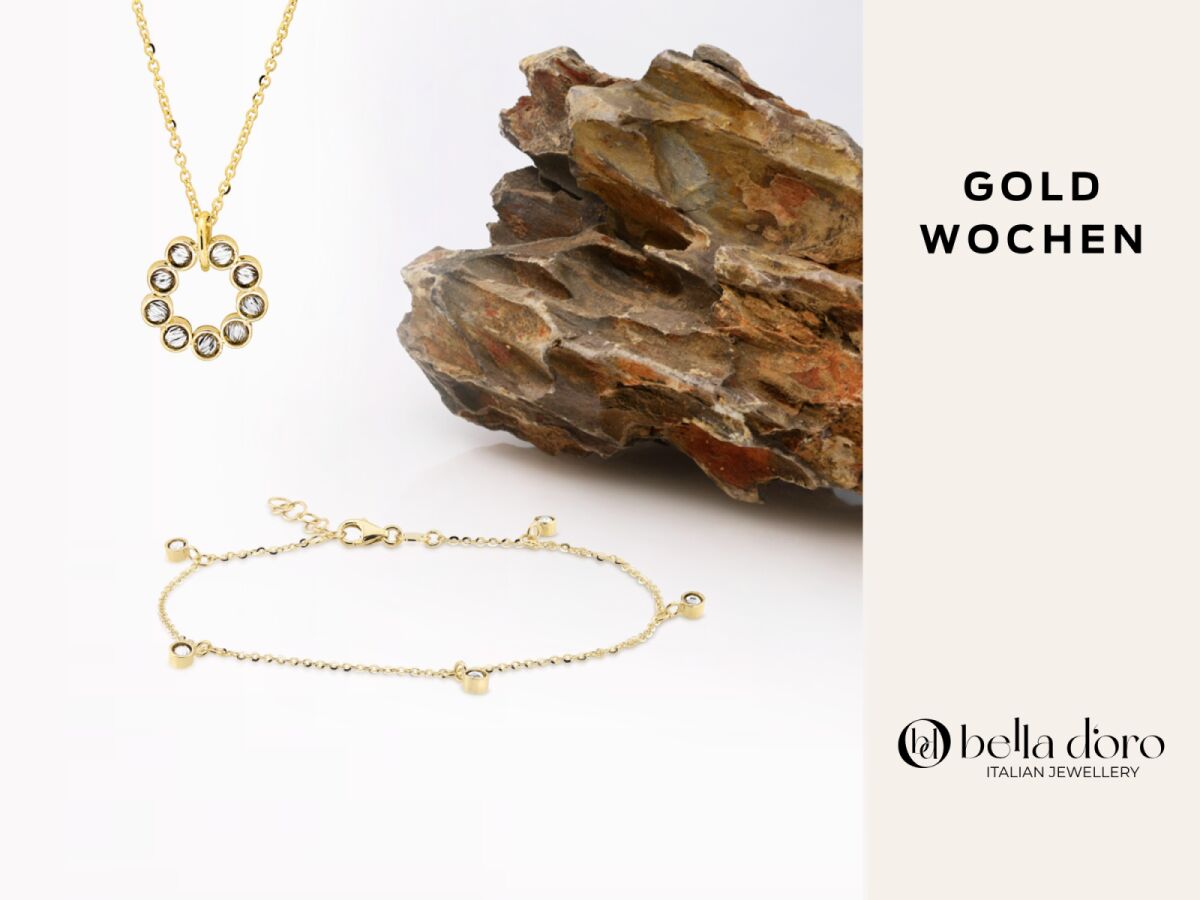 Gold steht für Eleganz, Zeitlosigkeit und Stil – und bei uns wird es jetzt besonders glänzend: Entdecken Sie während unserer Goldwochen exklusiven Goldschmuck der Marke bella doro zu attraktiven Sonderpreisen.