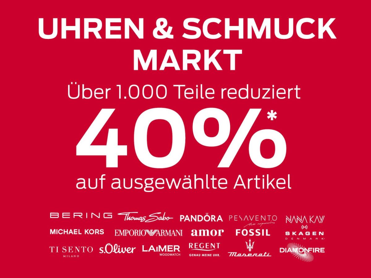 Kommen Sie vorbei und stöbern Sie in unserer vielfältigen Auswahl – unser Sortiment hält sicherlich das richtige Stück für Sie bereit. Mit Rabatten auf über 1.000 Schmuckstücke ist jetzt die beste Gelegenheit, sich oder jemand Besonderem eine Freude zu machen. Denken Sie schon jetzt an Weihnachten und profitieren Sie von unserer exklusiven Reduzierung in der Schmuckabteilung.